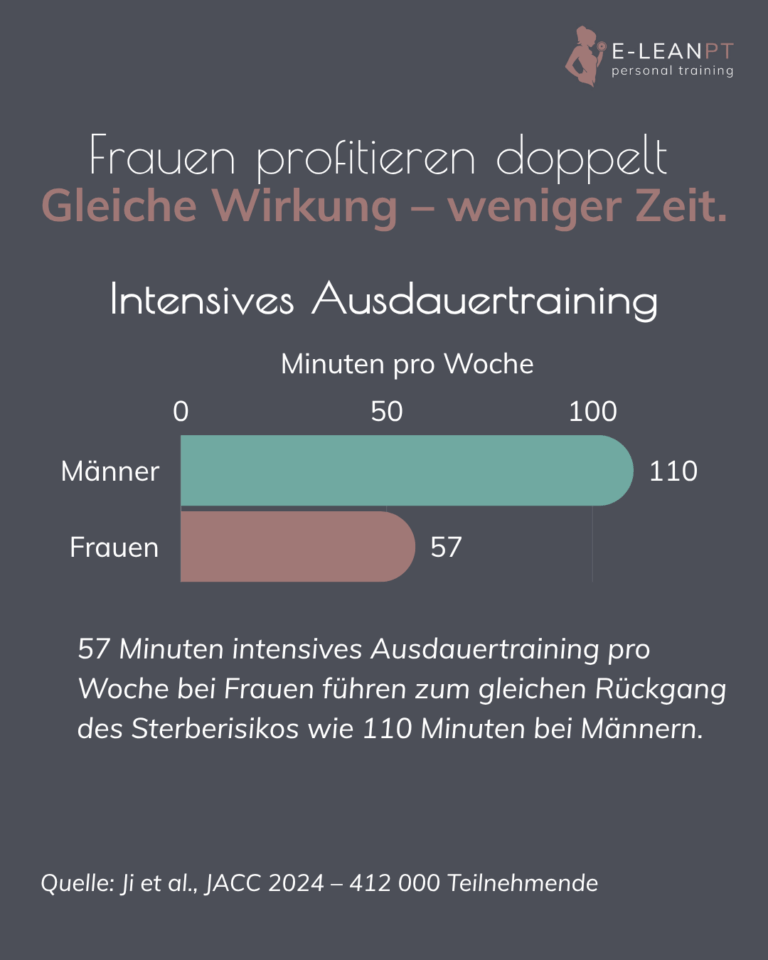 This research fundamentally challenges the „one-size-fits-all“ exercise guidelines we’ve been following for decades. Current German public health recommendations (like those from the WHO adopted by German health authorities) make no distinction between sexes – everyone gets told to aim for 150-300 minutes of moderate activity or 75-150 minutes of vigorous activity plus two strength sessions weekly. But if women achieve equivalent health benefits at roughly half the cardio volume and one-third the strength training frequency, shouldn’t guidelines reflect these biological differences?